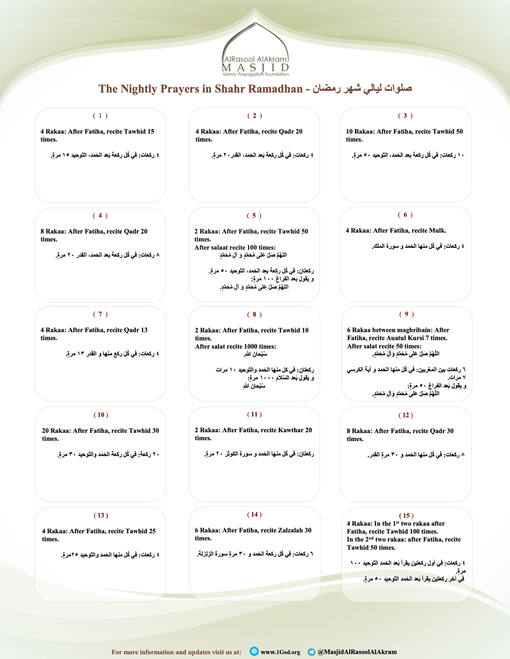 Click to download the daily Salat timetable, daily duaas and Salat for each night in Shahr Ramadhan