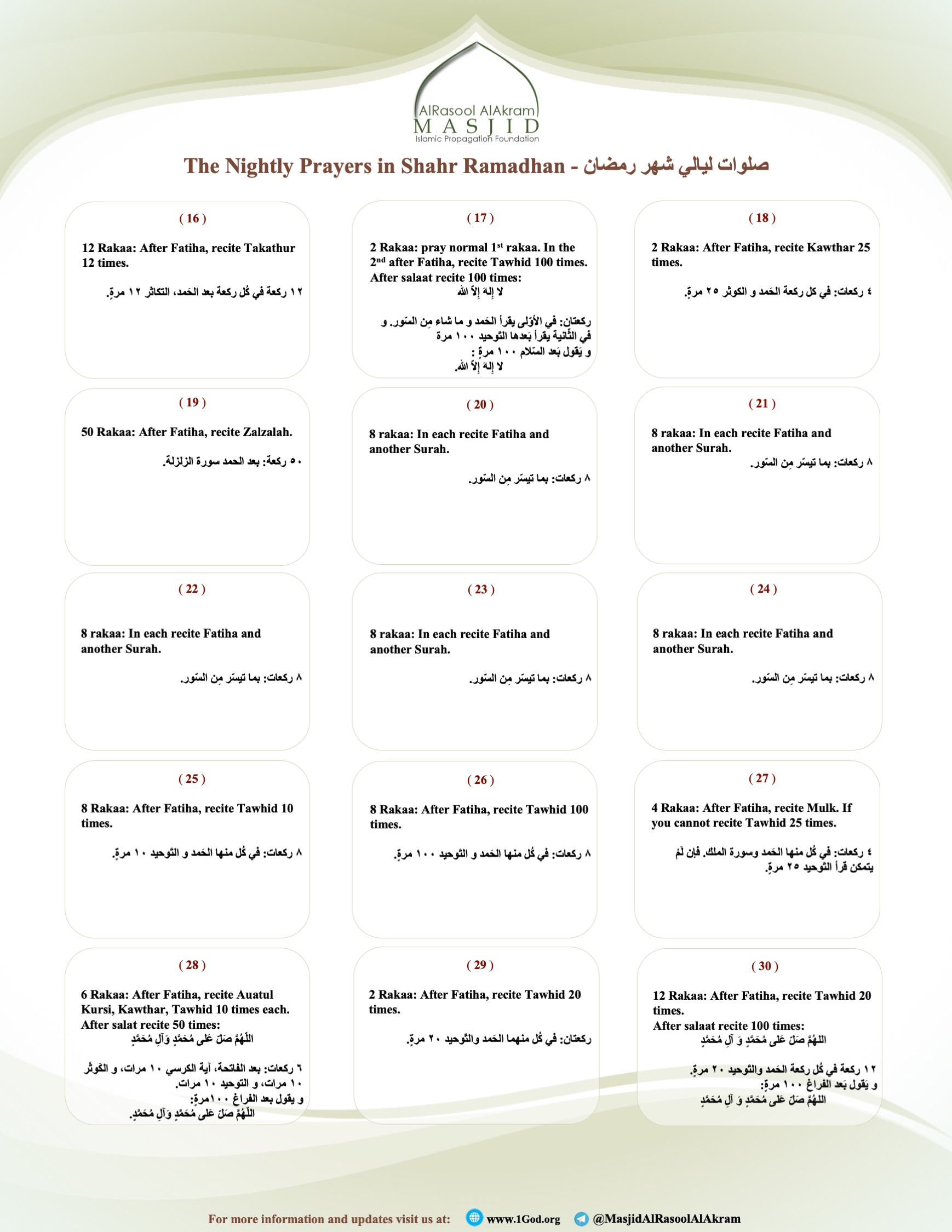 Click to download the daily Salat timetable, daily duaas and Salat for each night in Shahr Ramadhan